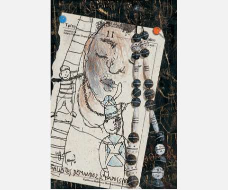τεχνική: Λάδι, ξυλομπογιές, μελάνι, κολάζ