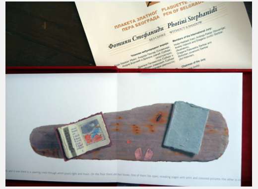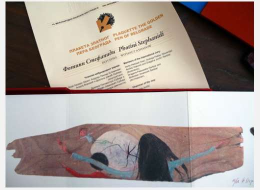 από την 45η διεθνή Μπιενάλε Εικονογράφησης Golden Pen για την συλλεκτική έκδοση Χωρίς Σκιά (κείμενο Φωτεινή Στεφανίδη), Βελιγράδι 2010