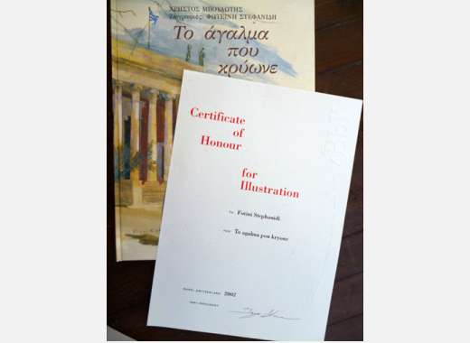 για την εικονογράφηση του βιβλίου Το άγαλμα που κρύωνε (κείμενο του Χρήστου Μπουλώτη, εκδόσεις Πατάκη) Στοκχόλμη 2002