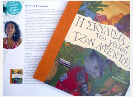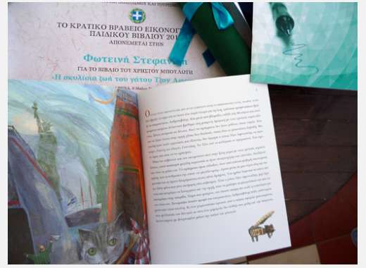 για το βιβλίο Η σκυλίσια ζωή του γάτου Τζον Αφε- ντούλη (κείμενο Χ. Μπουλώτης), εκδόσεις Ε. Γράμματα, 2009