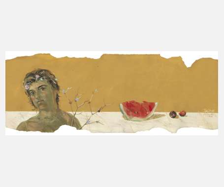 , λεπτομέρειες (1&2), ολόκληρο το έργο (3). Αβγοτέμπερα σε βαμβακερό χαρτί, 76x28 εκ., 2012