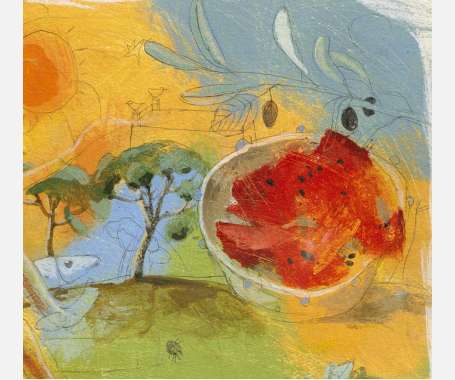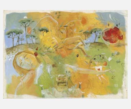 Ηώς και Τιθωνός, ολόκληρο το έργο (1), λεπτομέρειες (2&3). Αβγοτέμπερα και μολύβια σε βαμβακερό χαρτί, 50x70 εκ., 2014