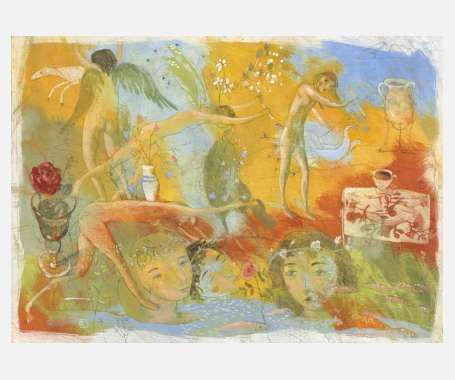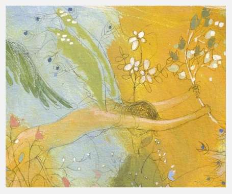 «...Άθελά της αγγίζει το τεπεινό της περιδέραιο. Η σκάλα τελειώνει, κι από την ανοιχτή πόρτα... Θεοί! ο καλός της ο δικός της Δάφνις, σε κρεβάτι μαρμάρινο, ολόγυμνος, μισοξαπλωμένος...» ΦΣ, βιβλίο ΕΡΟΣ ΜΥΘΟΠΛΟΚΟΣ