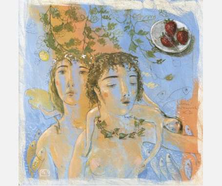 Ερμαφρόδιτος και Σαλμακίς, ολόκληρο το έργο (1), λεπτομέρειες (2&3). Αβγοτέμπερα και μολύβια σε βαμβακερό χαρτί, 35x35 εκ., 2015