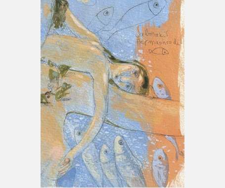 «Κοιτάζει τα χέρια του, βλέπει να 'χουν από δέκα δάχτυλα το καθένα. Τρομάζει. "Γιατί, πατέρα Ερμή να γίνει αυτό σ' εμένα;" - η μόνη κραυγή που βγήκε από το στόμα του...» ΦΣ, βιβλίο ΕΡΟΣ ΜΥΘΟΠΛΟΚΟΣ